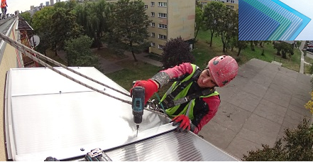 Монтаж и замяна на поликарбонатни плоскости от алпинисти.